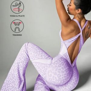 Enterizo Deportivo Push Up Tiro Bajo Espalda Cruzada Animal Print – Lila Ref. 5450