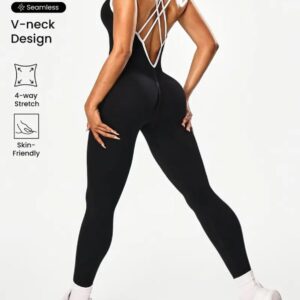 Enterizo Deportivo Largo Push Up Espalda Descubierta Cruzada – Negro Ref. 5250
