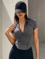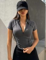 Camiseta Deportiva Fit con Cremallera Frontal – Gris Ref. 2540
