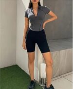 Conquista cada movimiento con estilo y comodidad. Esta camiseta deportiva gris está confeccionada en un tejido ligero y transpirable (poliéster – elastano) ideal para mantenerte fresca durante todo tu entrenamiento. Su diseño manga corta. te da libertad total de movimiento, mientras que la cremallera frontal añade un toque moderno y funcional permitiéndote ajustar la ventilación a tu gusto.