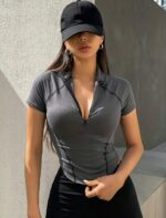Camiseta Deportiva Manga Corta Con Cremallera – Gris Ref. 2540