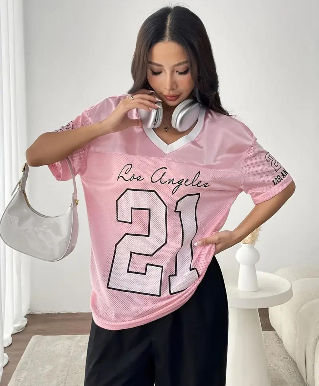 Camiseta Oversize Deportiva En Malla – Rosa Ref. 2495