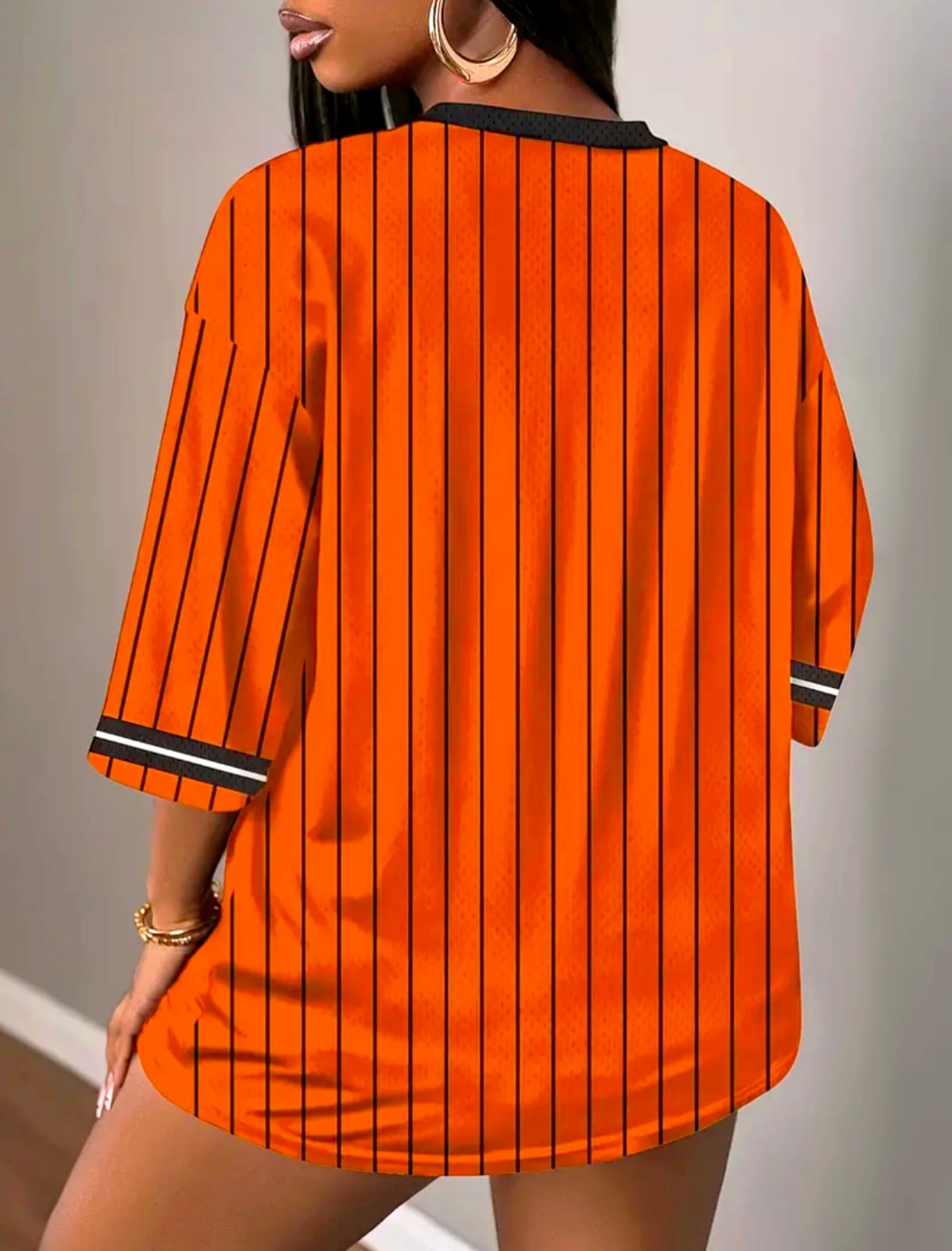 Camiseta Oversize Deportiva Estilo Jersey – Naranja Ref. 2585
