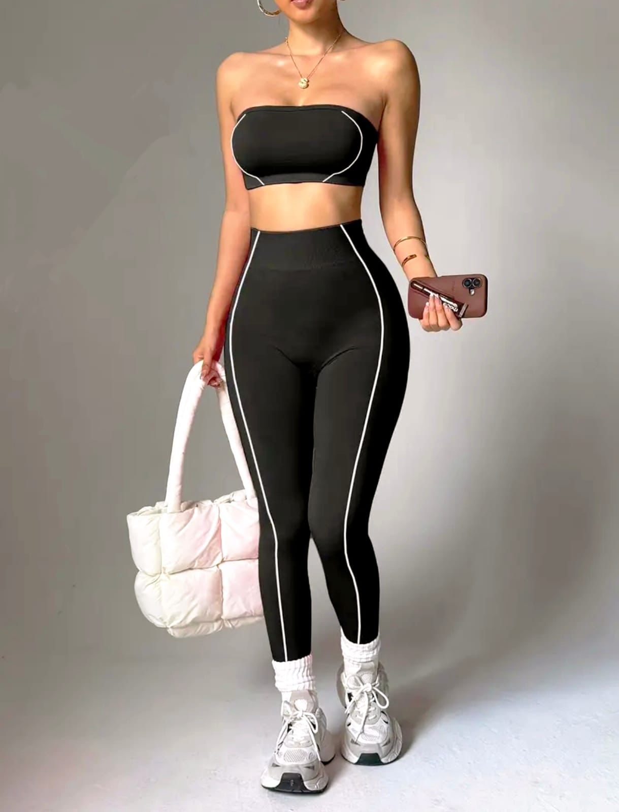 Eleva tu outfit fitness al siguiente nivel con este conjunto deportivo premium diseñado para mujeres que quieren verse tan fuertes como se sienten. Su diseño moderno y minimalista combina a la perfección estética urbana + rendimiento deportivo, creando una silueta estilizada, femenina y poderosa.