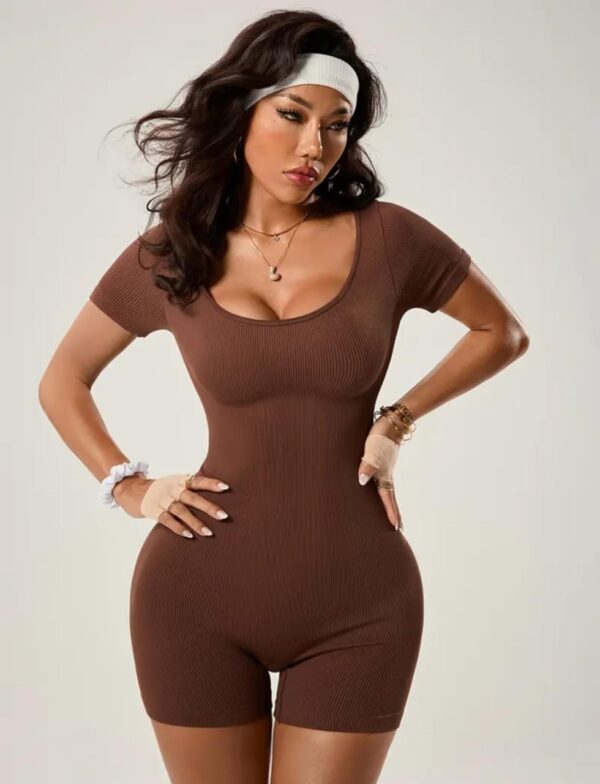 Este mono deportivo de corte ceñido es la mezcla perfecta entre sensualidad, comodidad y rendimiento. Confeccionado en una tela acanalada ultra elástica, abraza tus curvas mientras te da total libertad de movimiento.