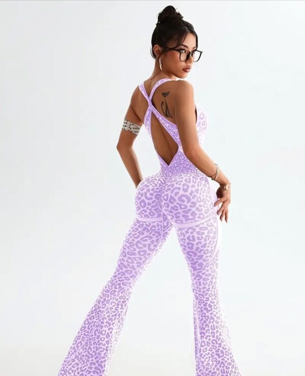 Enterizo Deportivo Push Up Tiro Bajo Espalda Cruzada Animal Print – Lila Ref. 5450