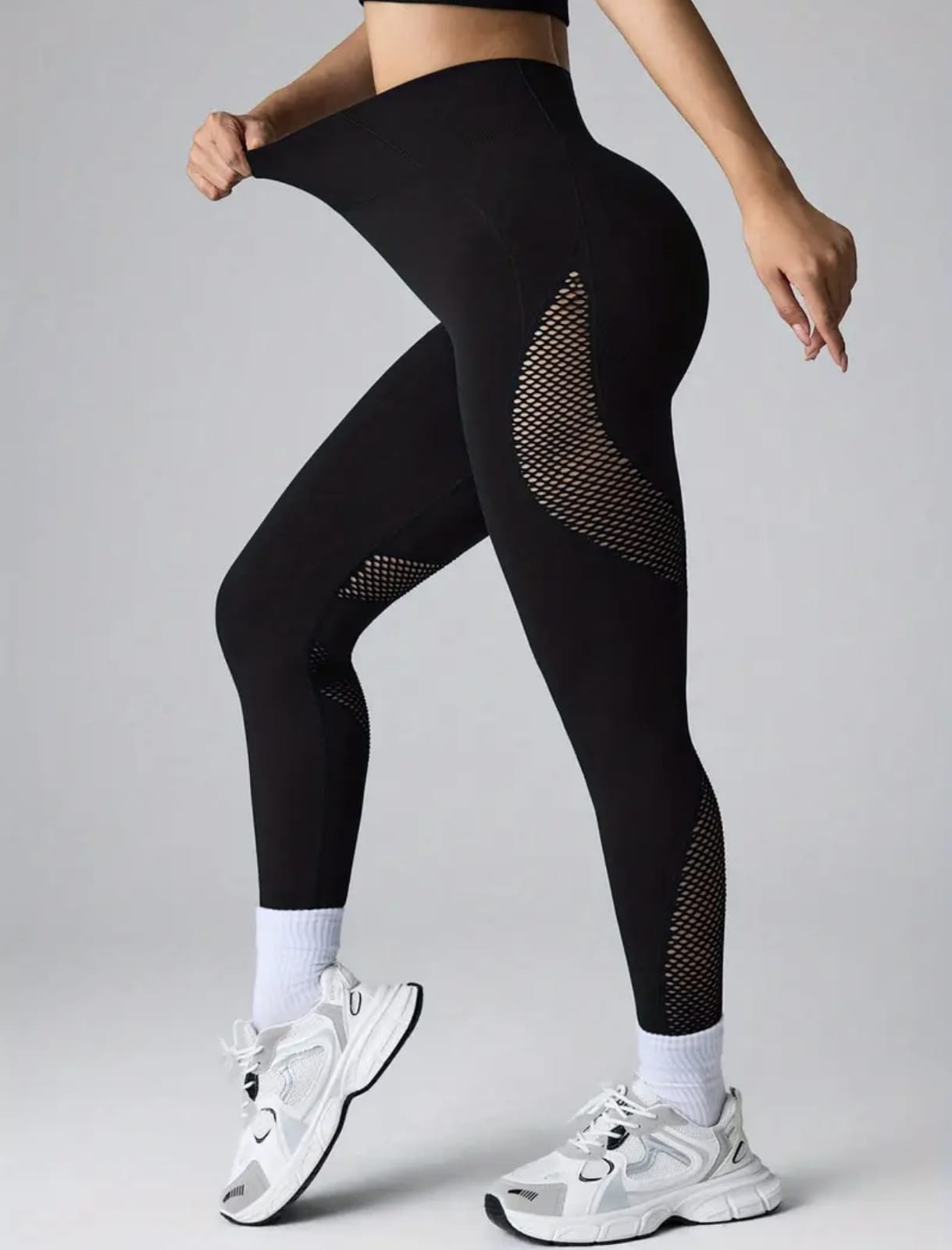 Lycra Leggings Deportivo Push Up Con Malla Tiro Bajo – Negro Ref. 1385
