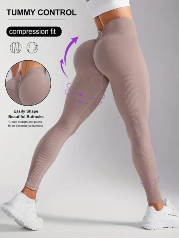 Diseñados para mujeres que entrenan con estilo y confianza, estos leggins seamless de compresión te ofrecen el equilibrio perfecto entre soporte, comodidad y realce. Su diseño con efecto push up y cintura en “V” estiliza la figura, define el abdomen y levanta naturalmente los glúteos para un look que roba miradas dentro y fuera del gym.