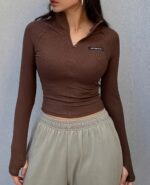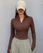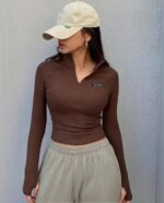 Prepárate para conquistar tu rutina con el Buzo Deportivo «Optimistic», una prenda que fusiona estilo urbano y funcionalidad deportiva. Confeccionado en una suave tela acanalada que se ajusta perfectamente a tu silueta, este crop top de manga larga no solo realza tu figura, sino que te acompaña cómodamente en cada movimiento.