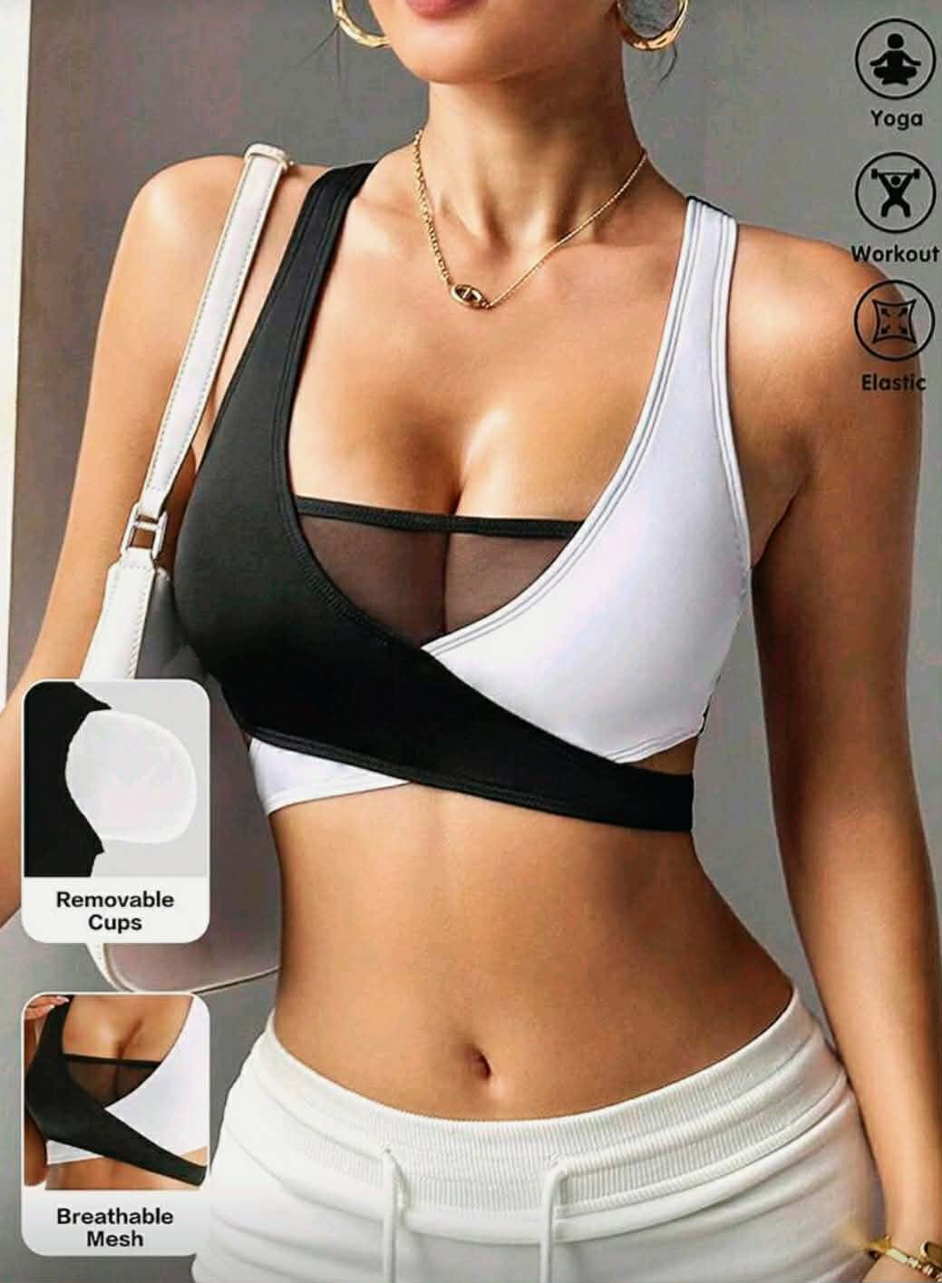 Este top deportivo bicolor está diseñado para mujeres que aman verse fuertes, seguras y con estilo en cualquier momento del día. Su diseño moderno mezcla lo fitness, lo urbano y lo fashion en una sola prenda irresistible 🤍🖤